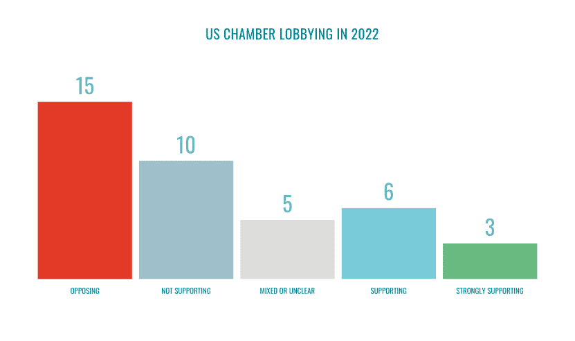The Chamber opposed the Inflation Reduction Act, the most important climate legislation to be passed in decades, saying the “legislation includes taxes that would discourage investment and undermine economic growth and price controls that would limit American innovation.”