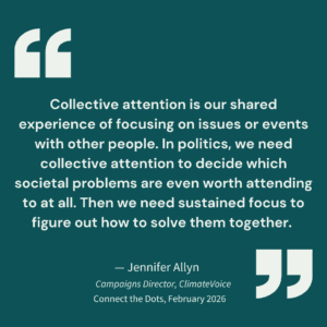 What we know for sure is that 2026 will be unpredictable. Our individual and collective attention will be pulled in directions we can’t yet even imagine. That is why the ClimateVoice team is laser focused on finding promising climate policies you can advocate for right now.